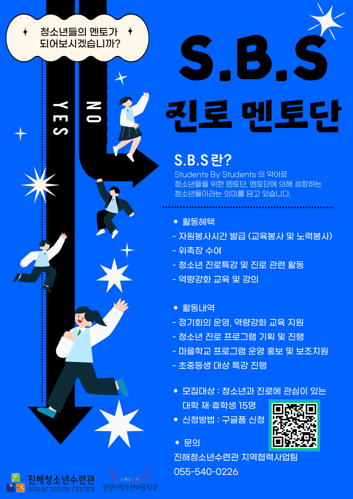 진해청소년수련관에서 청소년과 진로에 관심이 많은 대학생 멘토단을 모집합니다 !!