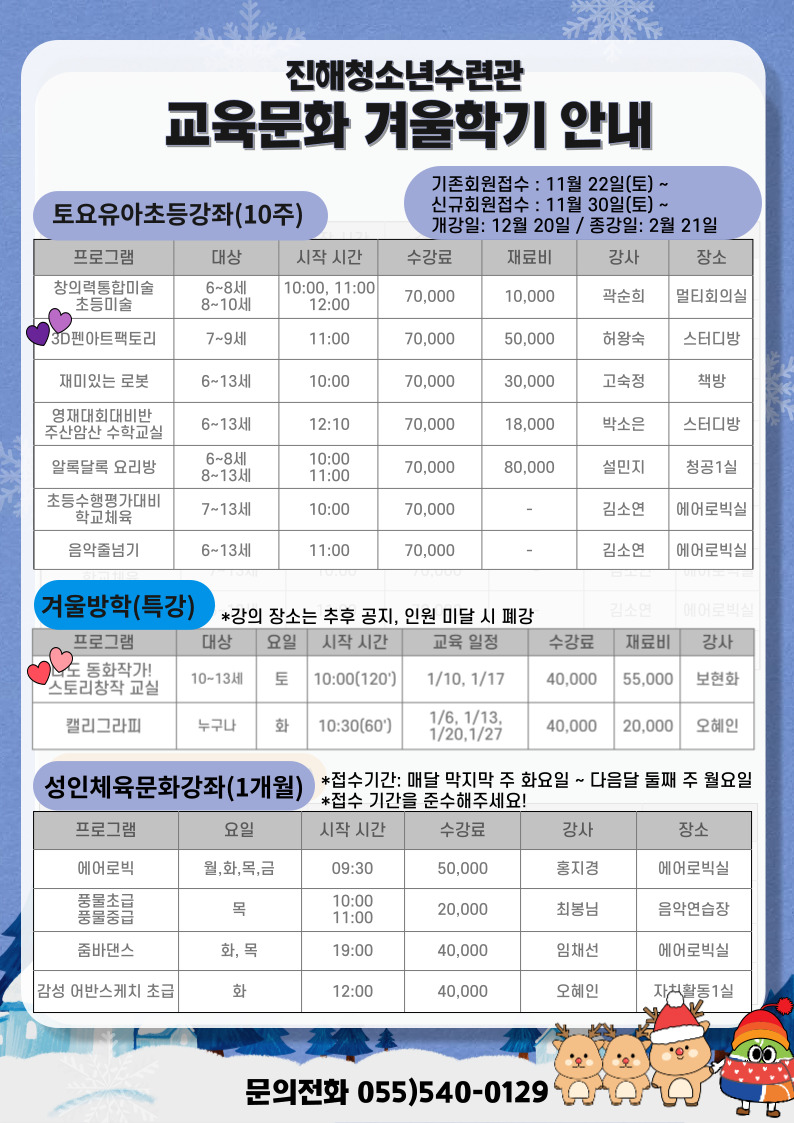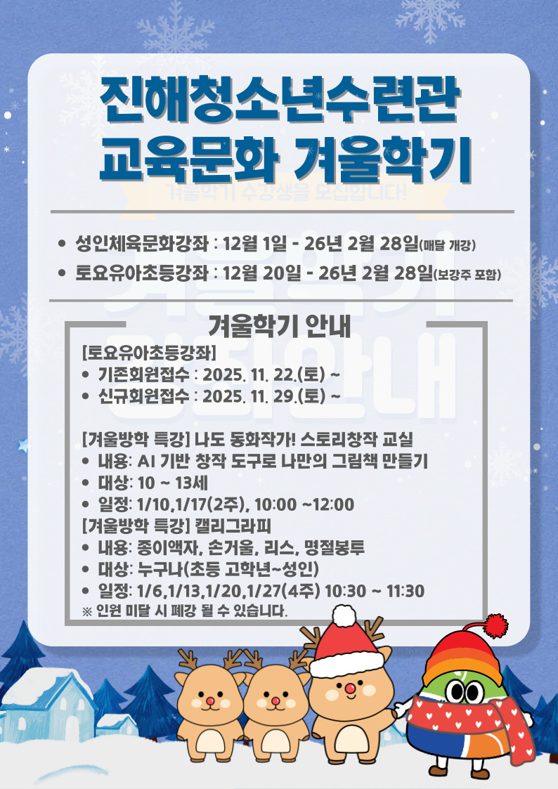 겨울방학에도 교육문화의 열정이 뿜뿜 이어질 예정입니다.