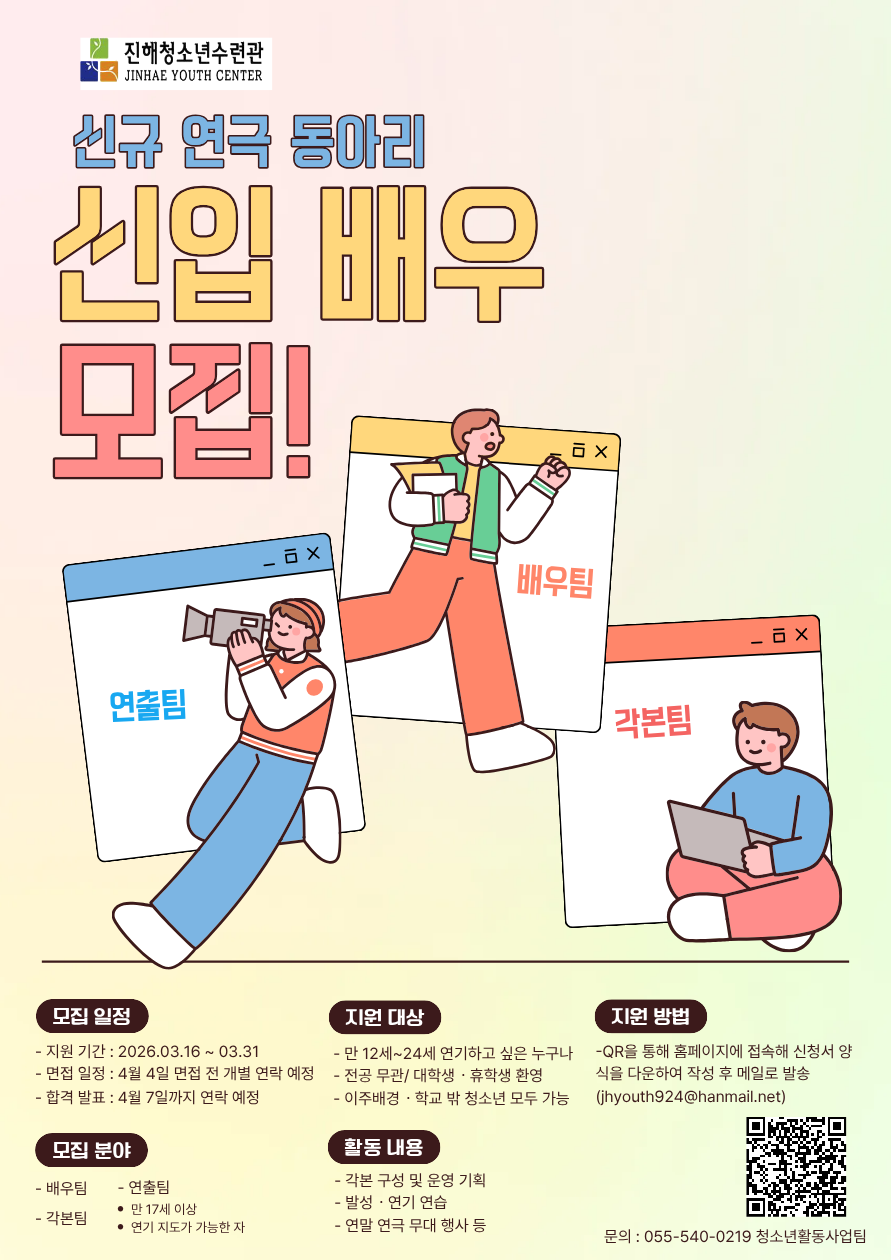 <2026년 진해청소년수련관 신규 연극동아리 신규부원 모집>