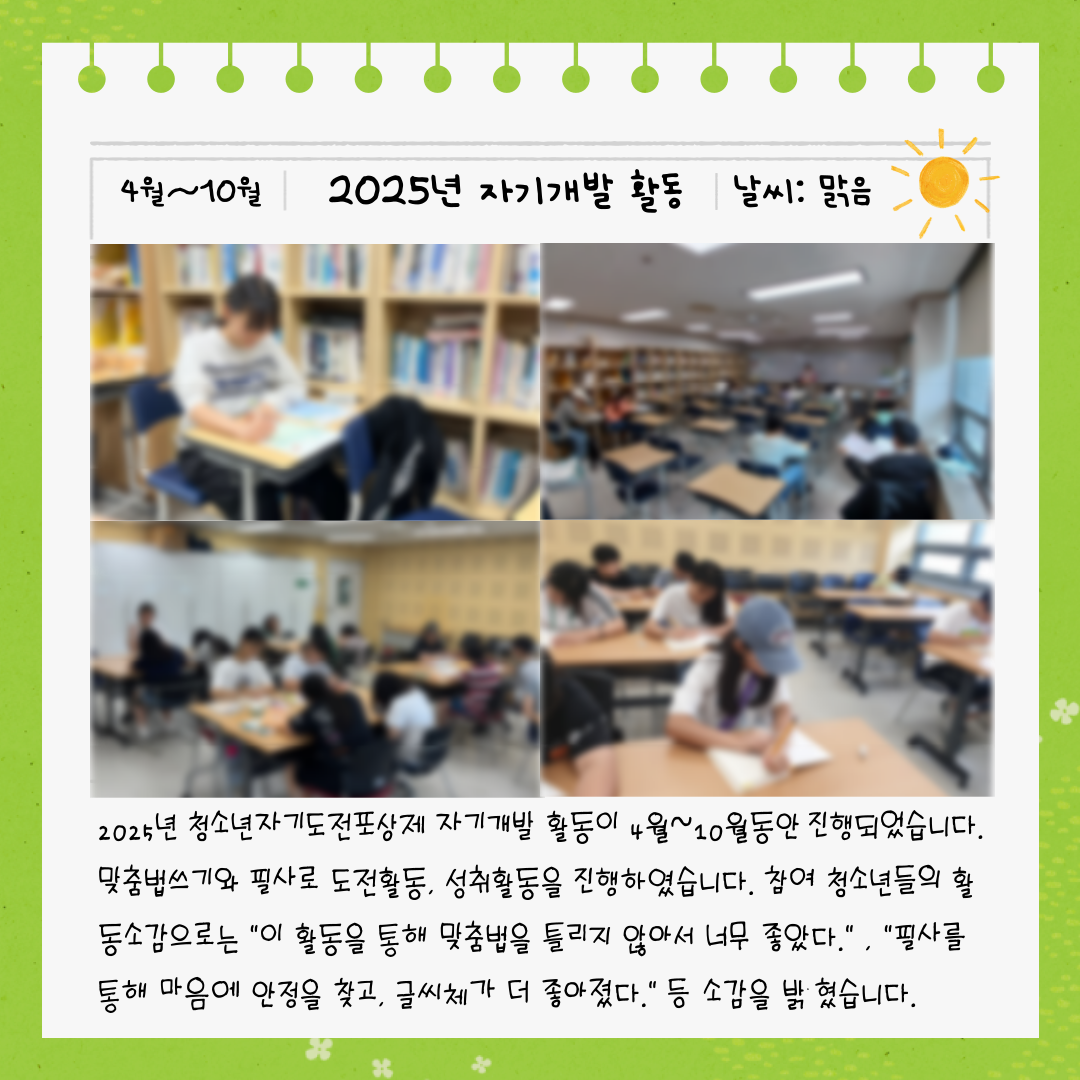 🍀2025년 청소년자기도전포상제 자기개발 활동🍀
