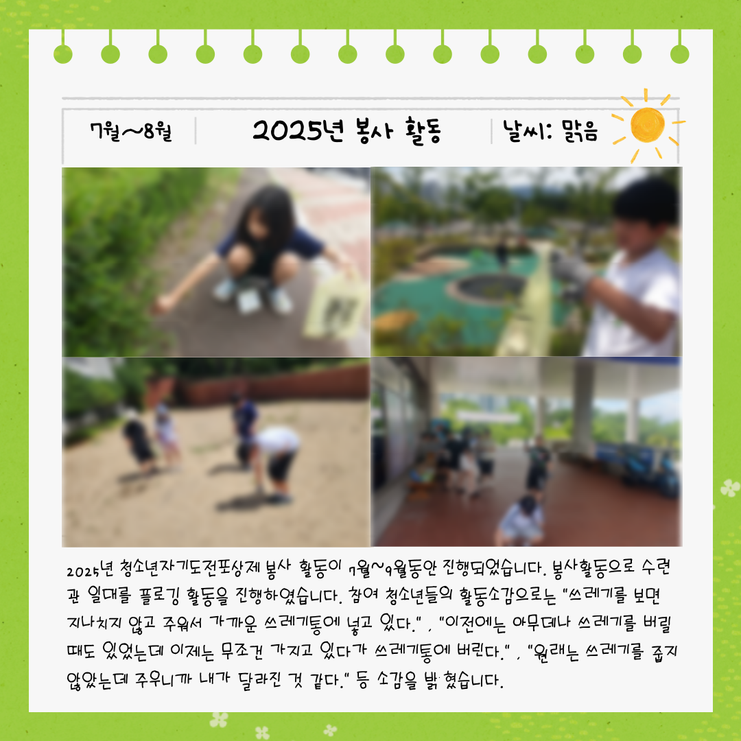 🍀2025년 청소년자기도전포상제 봉사 활동🍀