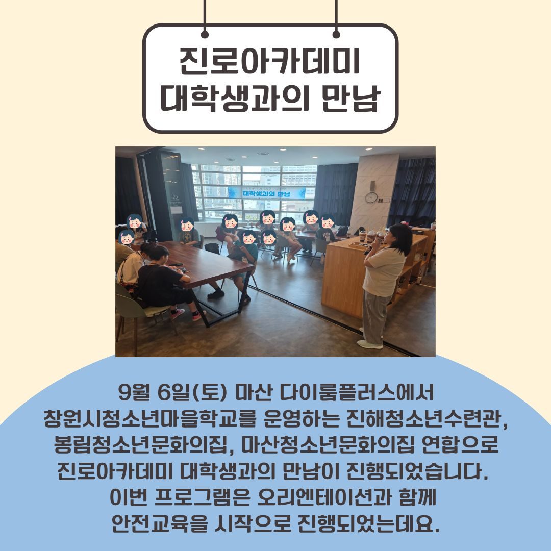 <마을학교> 창원시청소년마을학교 운영기관 연합 진로아카데미 대학생과의 만남 진행