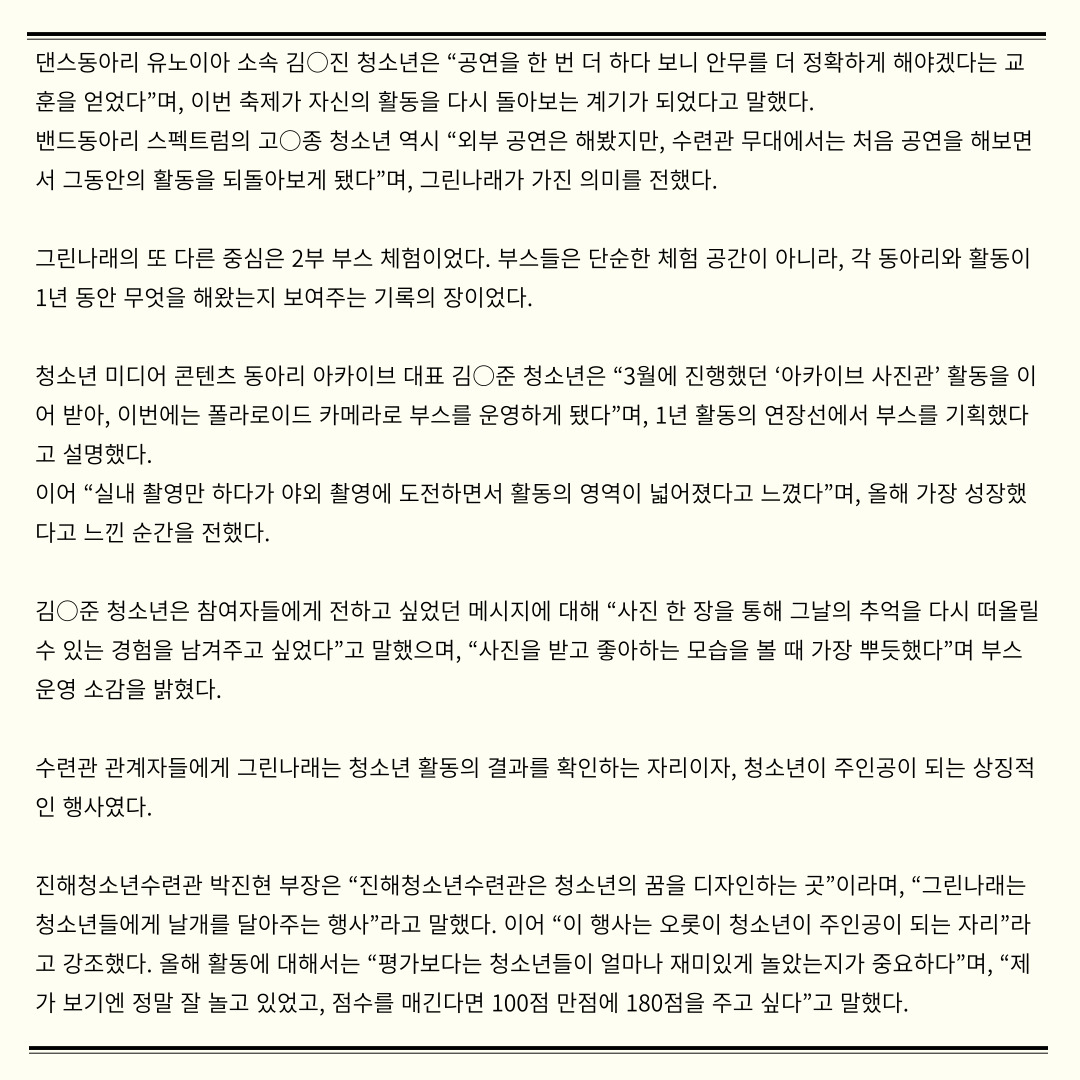 이번 기사는 2025년 그린나래 현장을 담은 기사입나다.